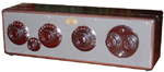 This Day Craft 5 with a Day Fan Type 5049 Chassis, was discovered in a surplus shop in Nevada. The grill cloth had been replaced with a piece of flowered upholstery fabric. The wooden grill was badly warped and when removed it disintegrated. But there was enough left to serve as a template so a new one was created. |