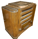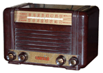 | I bought this radio, Emerson Model 505, only because it is identical to the one that resided on my night stand when I was a child. The plastic dial cover was twisted and rather opaque. I thought it would be easy to get a piece of plastic and mold it into the right shape. I couldn't find any suitable plastic and finally had to get it at a wholesale supplier. It only came in 4 x 8 foot sheets. (Does anyone need any plastic.) After making a wooden mold and heating the plastic in the oven I was successful in coming pretty close to the original. It works great but for some reason I don't hear "The Lone Ranger" or "I Love A Mystery" on it anymore. | ![]() |
