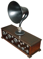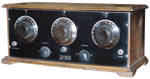 I've often wondered how kids nowadays, can get interested in electronics. I built my first radio when I was eight years old. From the time I first heard voices coming out of my earphones I was hooked. One of the reasons radio was so interesting was the vacuum tube. You could imagine the electrons wandering from the cathode to the plate, with the grid waving them on like a traffic cop. And when you first turned a new creation on, there was the soft glow of the filament. Often that was all that happened, but at least you had the glow. How can one get excited about holes migrating around inside a piece of silicon. No light, no heat, no fun. There is nothing you can visualize, no self designed theories that you can apply to your designs and have them work in spite of the fact that they were completely wrong. Also there was the danger. Nothing like getting knocked off the stool by the 300 volt B+ supply. How can one's adrenalin be stirred with a puny five volts. So now I have the nostalgia based drive to collect and restore old vacuum tube radios. I prefer those from the 20's, since most of the parts from which I built my first radios in the forties, were extracted from old 1920's radios. When the neighbors discover that a kid on the block likes radio, he gets all the discarded stuff he can handle. Maybe some of my interest in restoring radios is out of guilt for dismantling those wonderful old wooden and bakelite masterpieces. The main problem with collecting antique radios is finding room to display them. You rescue a decrepit looking hulk from the dumpster, apply large quantities of TLC to return it to it's glorious original condition, and then..........where do you put it. So now I have to be very selective since I'm just about out of space. But since the web has unlimited space, here are a few treasures: Just click on the thumbnails to see the Big picture. |