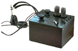 This is the oldest radio in my limited collection, A Radiola III. Here we delight in squelching the squeals of a regenerative receiver. The original tubes have been replaced with X99's using the appropriate adaptor sockets.