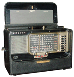 This Zenith Transoceanic Model L600, was found in a barn in Nevada. You could hardly tell what it was, it was so dirty. Someone had partially disassembled it, however most of the parts were laying inside the cabinet. After a good cleaning, assembly and some work on a bad power switch it looked a lot better. When the tubes were checked only one was bad. It was the 1L6 of course. After a search on ebay I finally found one and now it's safe in my study and working just fine on all bands. | |
